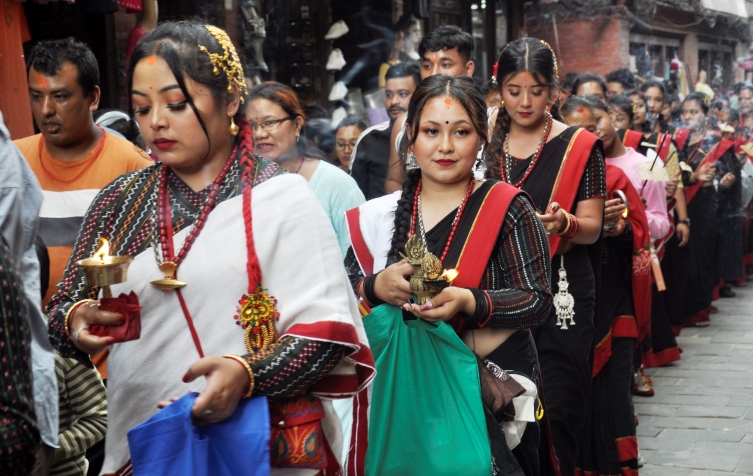 आज गुन्हुपुन्ही (सापारु) अर्थात नौ दिने पुर्णीको आठौं दिन भक्तपुर सुर्यमाःरीमा रहेका वाकुपती नारायणलाई नगर परिक्रमा गराउँदै गर्दा देखिएका भक्तजनहरुको फोटोहरु ।