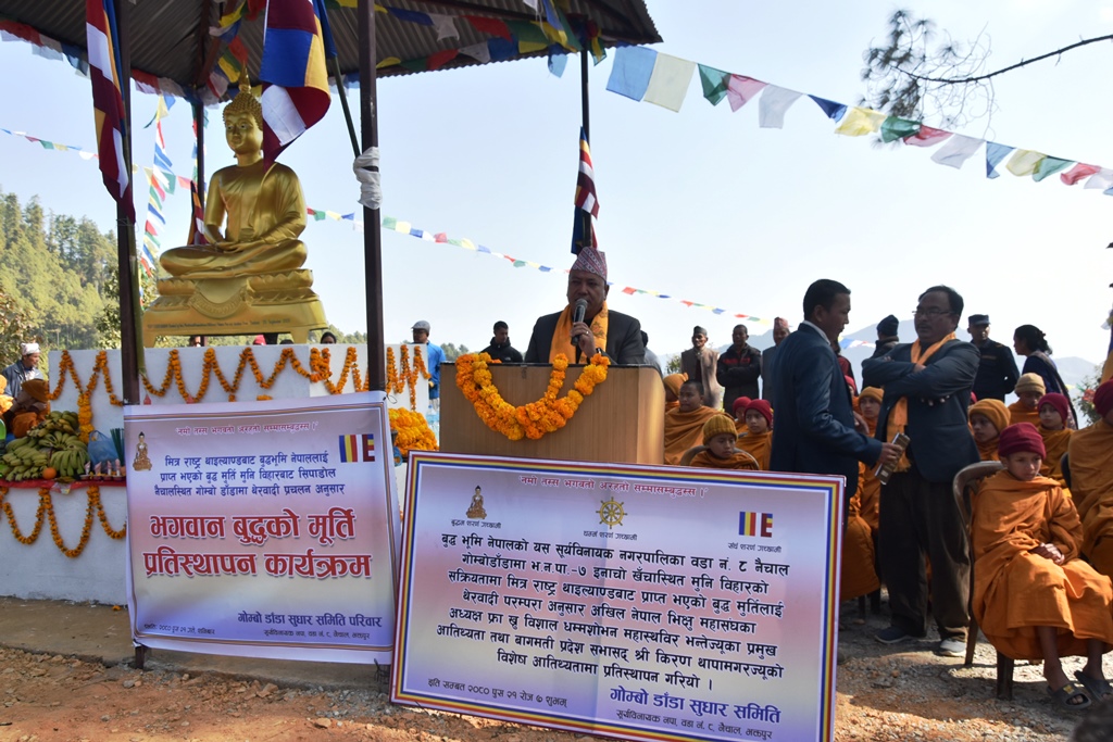 भक्तपुरको नैचालस्थित गोम्वो डाँडामा बुद्धको मुर्ति स्थापन गरेको छ ।