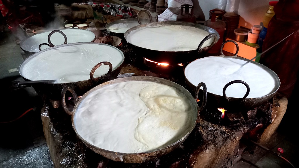 दुध उमाल्ने क्रम १० लिटर काचो दुधलाई करिव ३०,४० प्रतिशत अर्थात ३ देखि ४ लिटरको अनुपात कम भए पछि दुध उमाल्ने बन्द गरिन्छ । दुध उमाल्ने अनुपात ब्यवसायी अनुसार फरक हुन सक्छ । त्यस पछि धानको भुस माथि राखेको माटो कटरा (कला)मा उम्लिएको दुध शुरुमा आधा भरिन्छ । केहि समय पछि फेरी तातो दुध भरिन्छ । भर्ने क्रम कटार अनुसार आधा लिटर देखि एक, दुई, पाँच लिटरसम्मको बनाउने गरिन्छ भने अडर अनुसार ठुलो पनि बनाउने गरिन्छ । यसरी दुध राखेको कटरालाई तातो चिसो मिलाउनको लागि केहीबेर मै बिशेष गरी जुटको बोरा, कपासको पातलो सिरक जस्ता कपडाहरुले छोपेर राखिन्छ ।