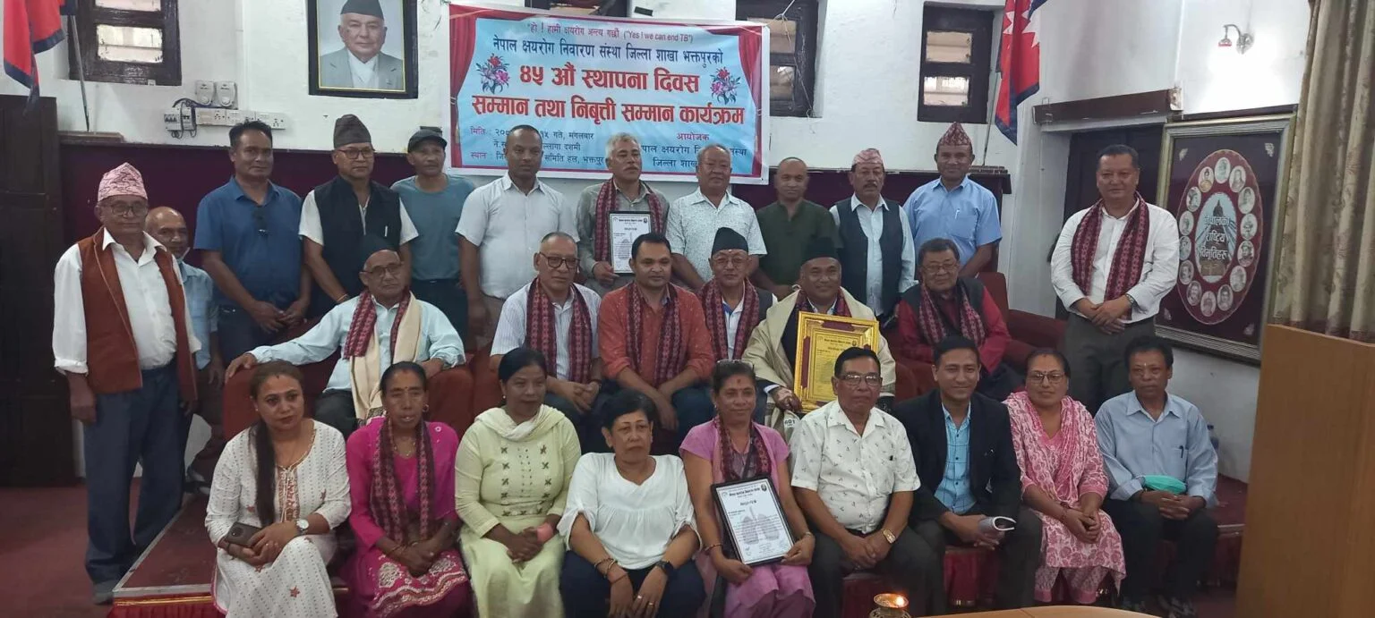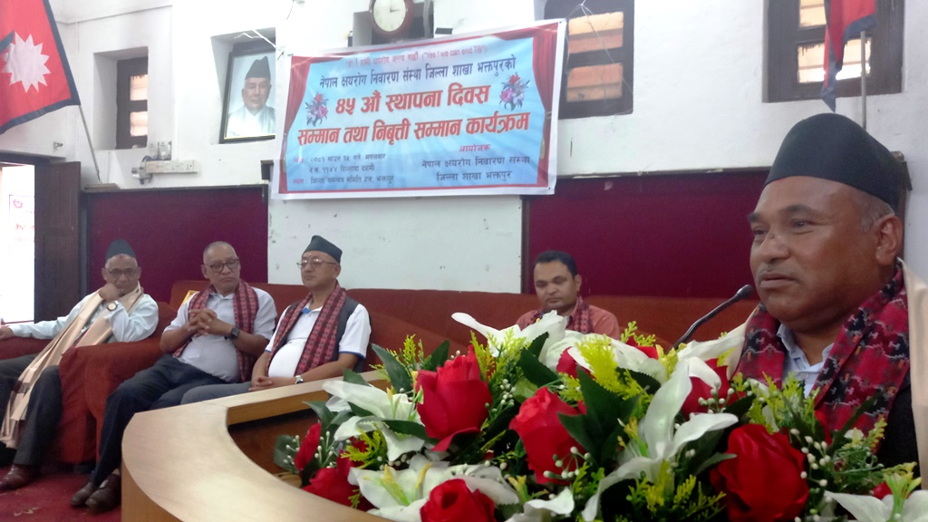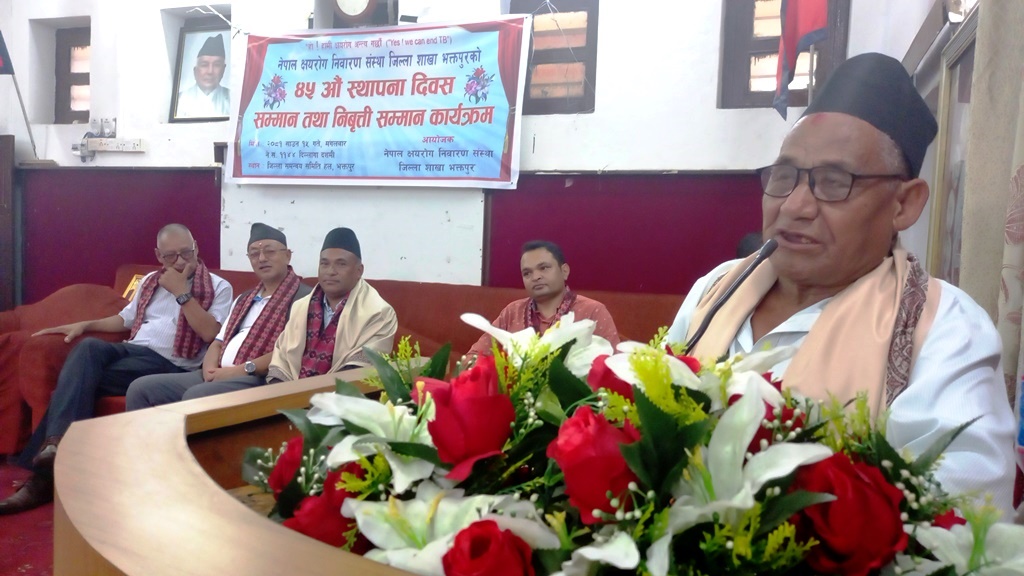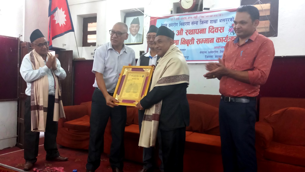 नेपाल क्षयरोग निवारण संस्था जिल्ला शाखा भक्तपुरको ४५ औँ स्थापना दिवसको अवसरमा पूर्व सभापति बाबुकाजी श्रेष्ठ र कार्यालय सचिव हिरण्य प्रताप सागामीलाई सम्मान गरिएको छ । कार्यक्रममा पूर्व पदाधिकारी एवं कार्यसमिति सदस्यहरूलाई पनि कदर पत्रद्वारा सम्मान गरिएको थियो ।