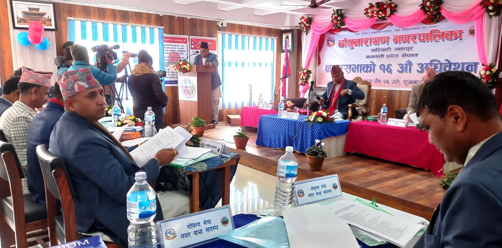 त्यस्तै चाँगुनारायण नगरपालिकाको १६ औं अधिवेशन पनि शुरु भएको छ । नगरपालिकाले चालू आर्थिक वर्ष २०८१र८२ को हालसम्ममा कूल बजेटको १६।३७ प्रतिशतमात्र बजेट खर्च गरेको छ । अधिवेशनमा नगर प्रमुख जीवन खत्रीले चालू आर्थिक वर्षको दुई महिना बर्खा, लगत्तै चाडपर्व जस्ता कारणले आर्थिक वर्षको हालसम्ममा लक्ष्य अनुरुप प्रगति हासिल गर्न नसकेको जानकारी दिनुभयो। बाँकी ७ महिनालाई लक्ष्य हासिल गर्ने उद्देश्यअनुरुप कार्यक्रम अगाडि बढाउने तय भएको नगर प्रमुख खत्रीले बताउनुभयो । नगरपालिकाको चालू आर्थिक वर्षको कूल बजेट २ अर्ब १२ करोड ३० लाख ९३ हजार ६ सय रुपैयाँ रहेकोमा हालसम्ममा ३४ करोड ७७ लाख ३० हजार रुपैयाँ खर्च भएको उपप्रमुख रमेश बुढाथोकीले जानकारी दिनुभयो। नगरपालिकाको चालू खर्चतर्फ ९३ करोड ७६ लाख २१ हजार ५ सय रुपैयाँ विनियोजित भएकोमा हालसम्म ७ करोड १६ लाख ५५ हजार ३ सय रुपैयाँ र पूँजीगततर्फ १ अर्ब १८ करोड ५४ लाख ७२ हजार रुपैयाँ विनोयोजित ७ करोड ६० लाख ७५ हजार ५ सय रुपैयाँ खर्च भएको छ